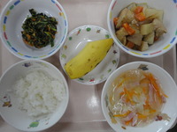 厚揚げと野菜のとろみ煮 ほうれん草のナッツ和え 洋風にゅう麺 ごはん バナナ |
