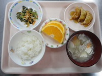 餃子のあんかけ 三色ナムル 豚汁 ごはん オレンジ |