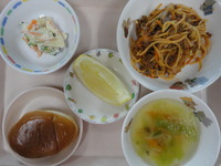 ナポリタン ブロッコリーとりんごの白和え わかめスープ バターロール グレープフルーツ |