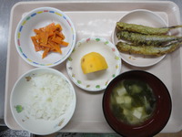 ししゃもの天ぷら にんじんの和風サラダ 味噌汁(えのき) ごはん 柿 |