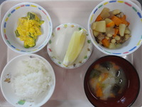 大豆の五目煮 かぼちゃと卵のサラダ 味噌汁(かぶ) ごはん グレープフルーツ |