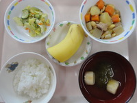 大豆の五目煮 ごま酢キャベツ とろろ昆布汁 ごはん バナナ |