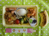 焼きそば ウィンナーソテー 鶏肉のケチャップ焼き ブロッコリーのごま和え他 みそ汁(こもも・ももぐみのみ) |