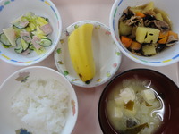 じゃが芋のひじき煮 ハムサラダ みそ汁 ごはん バナナ |