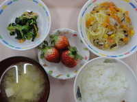 あんかけ焼きそば 小松菜とじゃこの和え物 みそ汁(わかめ) ごはん いちご |