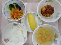 豆腐ハンバーグ スパゲティソテー ブロッコリー 白菜とベーコンのスープ ごはん バナナ |