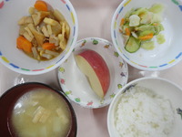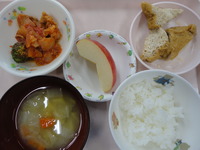 筑前煮 ごま酢キャベツ みそ汁 ごはん りんご |