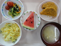 ミンチカツ 小松菜とじゃこの和え物 みそ汁(だいこん) ツナカレーピラフ すいか |