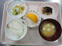 | ごはん さばの梅干し煮 ごま酢きゃべつ みそ汁 オレンジ |