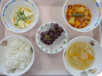わかめごはん 焼きビーフン きゅうりのゆかり和え ミニトマト コーン卵スープ ぶどう |