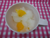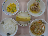 | フルーツポンチ | ごはん 鶏のマーマレード煮 カボチャと卵のサラダ ビーフンスープ バナナ |