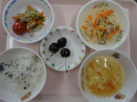 わかめごはん 焼きビーフン きゃべつのゆかり和え ミニトマト コーン卵スープ グレープフルーツ |