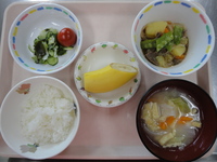 ごはん 肉じゃが わかめの酢の物 ミニトマト みそ汁 バナナ |