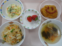 ツナピラフ とんかつ スパゲティサラダ わかめスープ いちご |
