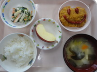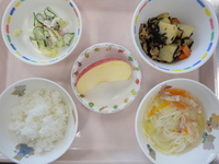 | オレンジゼリー | ごはん じゃがいものひじき煮 ハムサラダ 洋風にゅう麺 りんご |