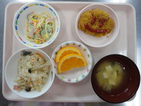 洋風きのこごはん とんかつ スパゲティサラダ みそ汁 オレンジ |