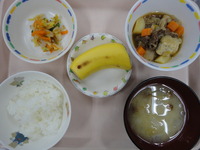 ごはん すきやき風煮 白菜のおかか和え みそ汁(なめこ) バナナ |