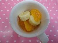 | フルーツポンチ | ごはん みんちかつ 人参の和風サラダ サーモンシチュー グレープフルーツ |