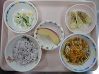 ごはん ちくわの磯辺揚げ ツナサラダ 煮込みうどん りんご |