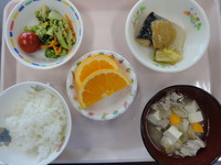 | こんぶおにぎり | ごはん さばのみそ煮 ブロッコリーのごま和え 豚汁 オレンジ |
