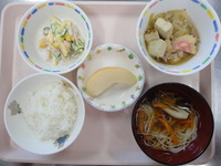 ごはん 鶏肉のすきやき風煮 マカロニサラダ そうめん汁 グレープフルーツ |