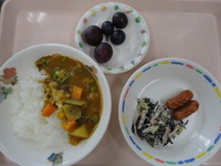 ごはん ウインナーソテー ひじきサラダ カレーシチュー 巨峰 |