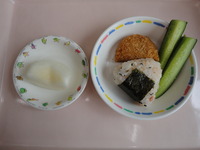 | フルーツヨーグルト | 鮭わかめおにぎり かぼちゃコロッケ スティックきゅうり 流しラーメン なし |