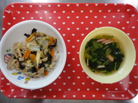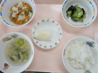 ごはん マーボー豆腐 わかめの酢の物 にら卵スープ なし |