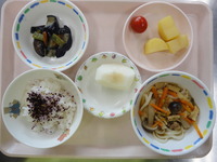ごはん じゃがいもの土佐煮 なすの甘辛いため ミニトマト 煮込みうどん なし |