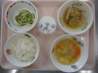 ごはん さばのおろし煮 きゅうりのごま酢 野菜ころころスープ ゼリー |