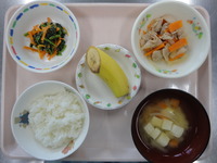ごはん 野菜たっぷり豚肉の生姜焼き ほうれん草の胡麻和え みそ汁 バナナ |