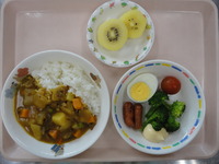 ごはん ウインナー ミニサラダ カレーシチュー キウイ |