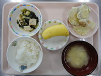ごはん 天ぷら 小松菜の煮びたし みそ汁 バナナ |