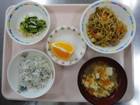 わかめごはん 焼きそば 小松菜ともやしのお浸し かきたま汁 はっさく |