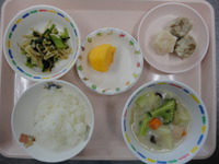 シューマイ 小松菜ともやしのお浸し サーモンシチュー ご飯 柿 |