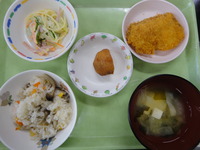 白身フライ スパゲティサラダ みそ汁 洋風きのこごはん みかん |