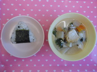 | じゃこおにぎり 鶏団子と厚揚げの汁物 |