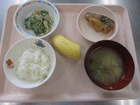 白身魚のごま照り焼き ポパイサラダ なめこのみそ汁 ごはん バナナ |