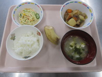 牛乳とじゃが芋の煮物 スパゲティサラダ 納豆と野菜のみそ汁 ごはん バナナ |