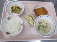 白身フライ 白菜のおかか和え クリ-ムシチュウ-(里芋) ごはん りんご |