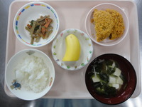 | フルーツポンチ | ミンチカツ きんぴらごぼう みそ汁 ご飯 バナナ |
