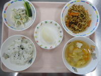 わかめおにぎり 焼きそば ツナサラダ スティックきゅうり 卵スープ なし |