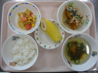 ごはん かぼちゃのそぼろ煮 キャベツとコーンの中華和え おくらスープ バナナ |
