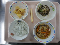 わかめごはん じゃがいもの土佐煮 なすの甘辛炒め 煮込みうどん 10gチーズ |