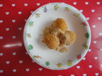 | きなこおはぎ | 鮭わかめおにぎり 白身フライ スティックきゅうり 流しそうめん ゼリー |