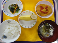 ごはん とんかつ 小松菜とじゃこの炒め物 みそ汁(わかめ) バナナ |