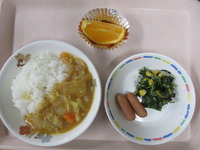 ウインナ- 青菜とコーンのごま和え カレ-ライス オレンジ |