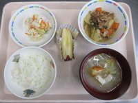 じゃがいもの昆布煮 鶏ささみと野菜たっぷり和え みそ汁(厚揚げ) ごはん りんご |