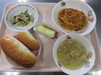 ナポリタン 小松菜サラダ 白菜のベ-コンス-プ 超熟ロ-ル りんご |