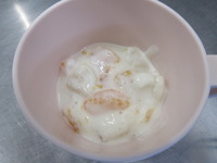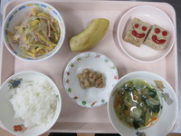 | フル-ツヨ-グルト | おさかなバーグ 冷ばん三すう 野菜とウインナ-のスープ ごはん 納豆 バナナ |